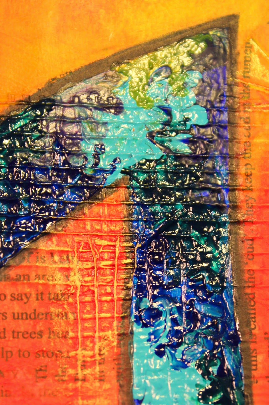 This has got to be my favourite textured part of this page. I think it almost looks like a peacock feather. I'm really pleased with the way the colouring worked out. The rivulets of colour were intentional and looked even better than I expected.